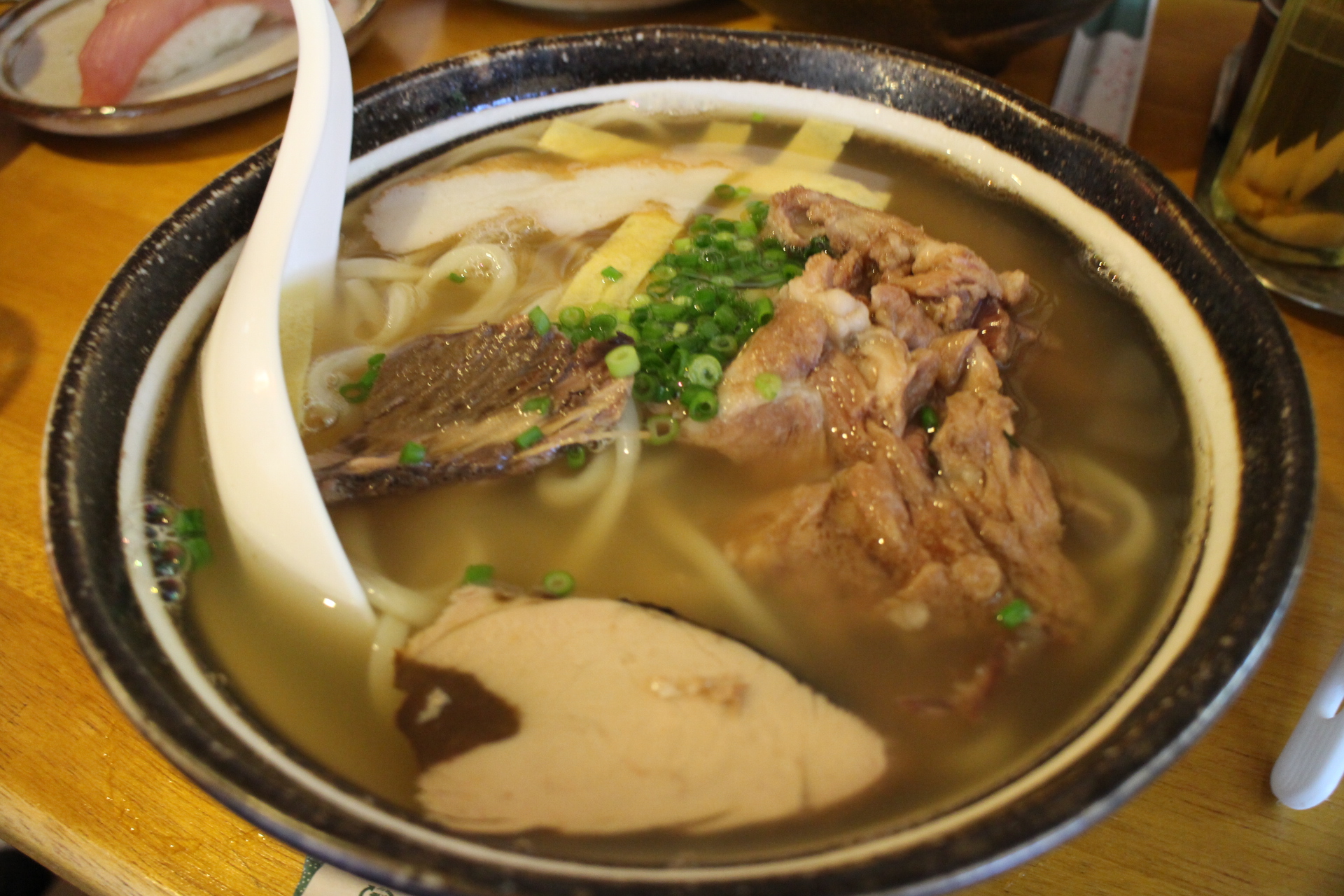 今回はかつおのなまり節と骨付き肉の入った「伊良部そば」を食べました。