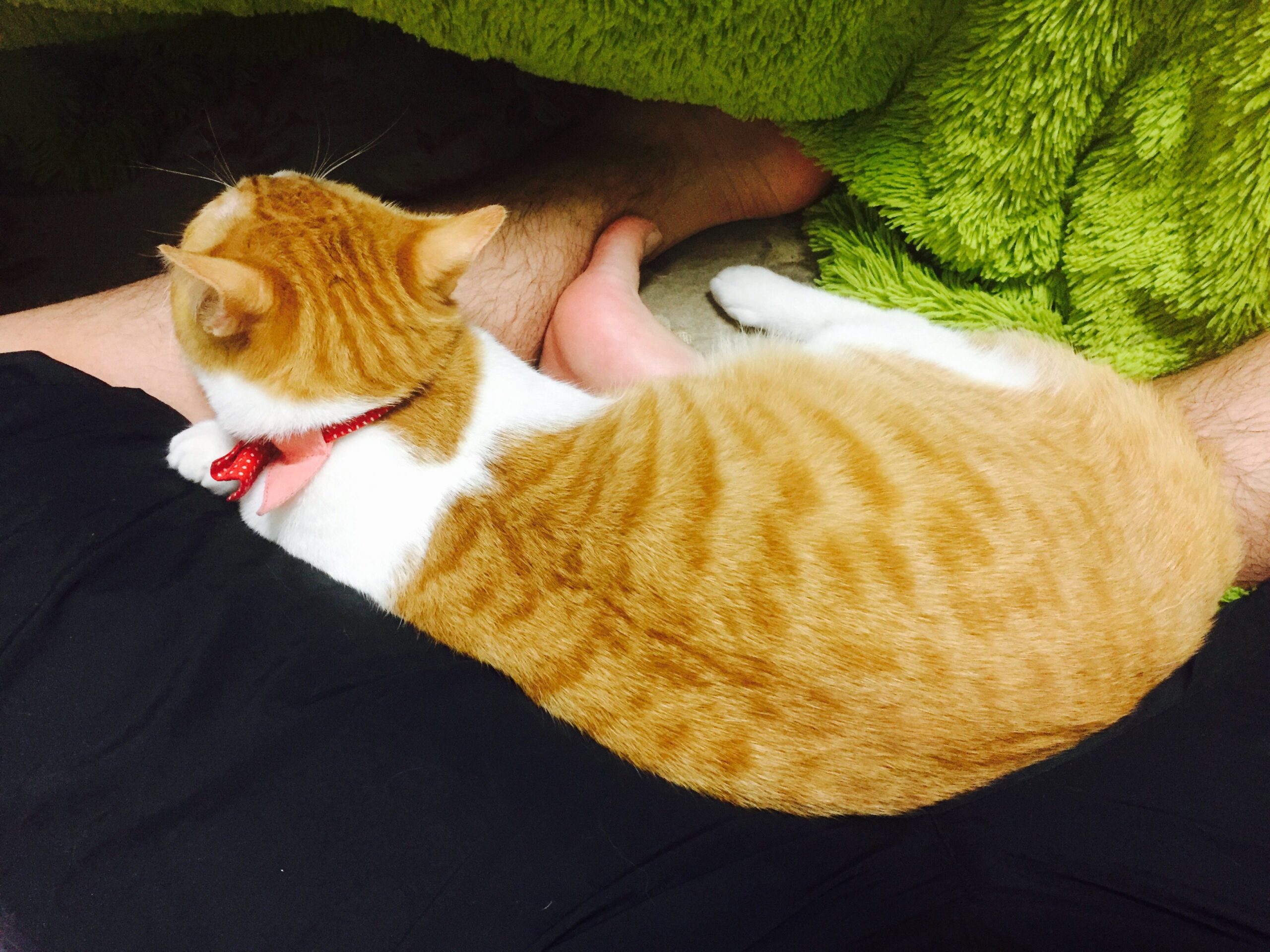 座ってTVを見ていると、膝にのってくるハレさん。